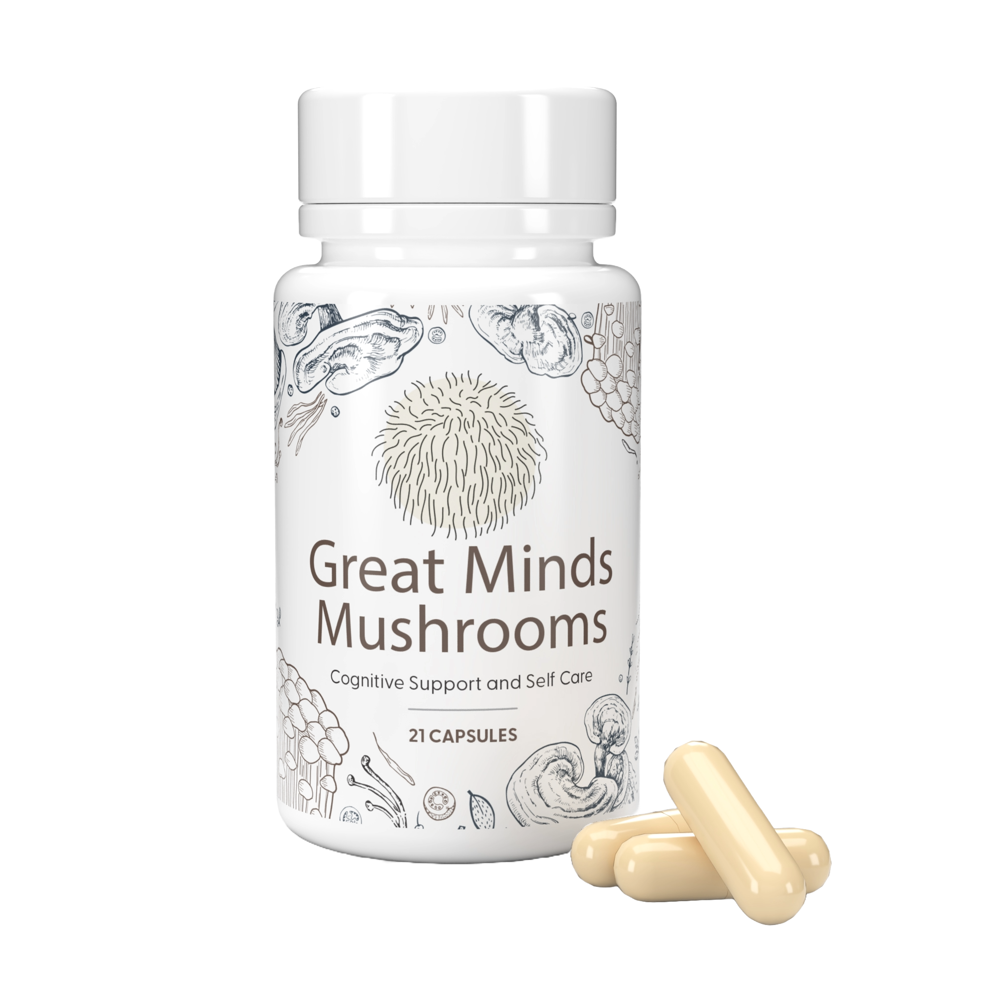 Great Minds Mushrooms is a supplement for Cognitive Support and Self Care made from Organic Lion's Mane mushroom extract, Organic Lemon Alkaloids and Black Strap Molasses.